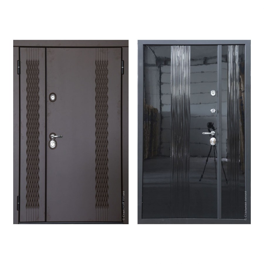 Двупольная входная дверь Гамма 2Р У изготовлена в современном стиле, с гармоничным сочетанием красивого стильного внешнего вида и надежных, качественных материалов и комплектующих. Уникальные вертикальные рисунки фрезеровки с внешней стороны придают полотну динамичность и особый шарм. Фирменное глянцевое покрытие с внутренней стороны двери, создают красивую зеркальную плоскость с интересной фрезеровкой.
